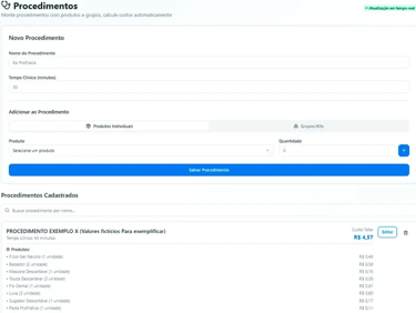 Você definirá o valor do seu procedimento e adicionar a porcentagem de lucro líquido que deseja receber ao final dele.