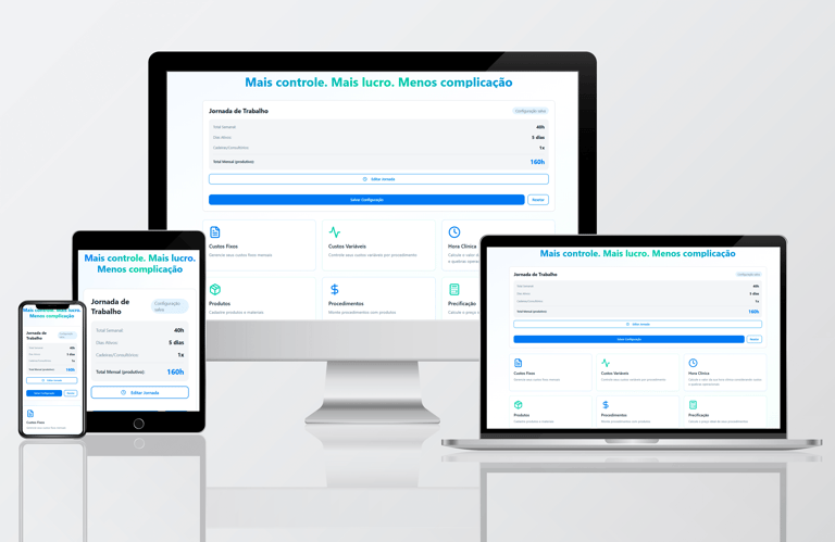 O sistema é muito fácil de usar, basta preencher os campos e chegará no valor da sua hora clínica e precificar seus serviços.
